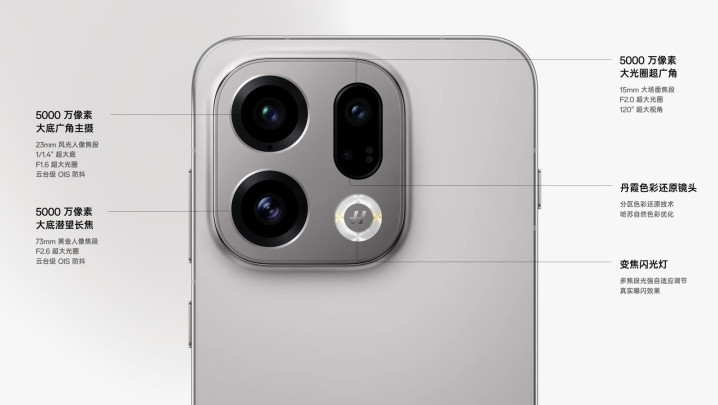 首先是硬件方面,OPPOFindX9采用5000万像素大底广角主摄+5000万像素大底潜望长焦+5000万像素大光圈超广角+丹霞色彩还原镜头的后置四摄系统,覆盖15mm~73mm物理焦段,不管是壮阔风景还是人像特写,都能轻松应对。